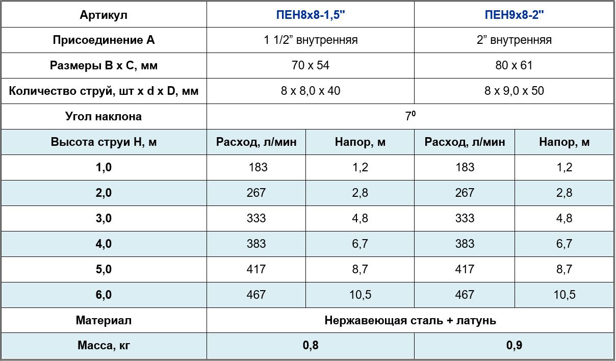 Насадка пенная многоструйная, 8ммх8шт, 1 1/2”, нерж сталь AISI316
